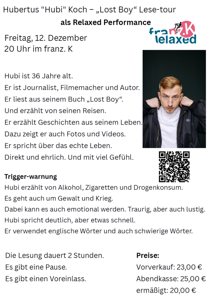 Hubertus “Hubi” Koch – “Lost Boy” Lese-Tour